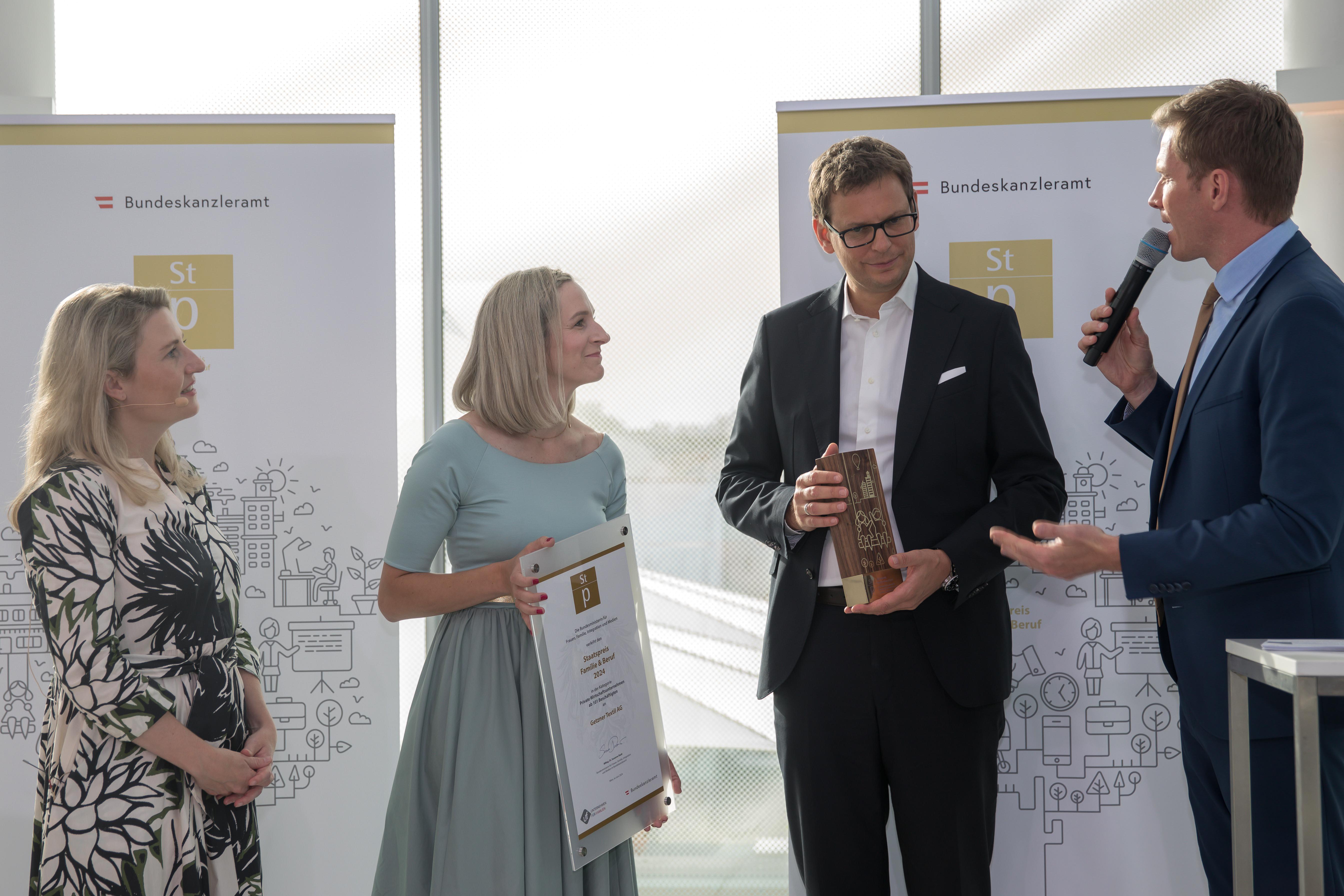 In feierlichem Rahmen wurde am 20. Juni der Staatspreis „Familie & Beruf“ 2024 in der Libelle im Wiener Museumsquartier vergeben. Insgesamt haben heuer 85 Unternehmen und Institutionen aus acht Bundesländern beim Staatspreis ihre Projekte zur Familienfreundlichkeit eingereicht. „Ich danke allen heuer ausgezeichneten Betrieben für ihr familienfreundliches Engagement. Mit ihren innovativen Ideen, bewährten Konzepten und mutigen Ansätzen leisten sie einen wesentlichen Beitrag, um die Arbeitswelt in Österreich noch familienfreundlicher zu gestalten. So sind sie Vorreiter für andere Unternehmen, indem sie ihre Mitarbeiterinnen und Mitarbeiter dabei unterstützen, ihre beruflichen Chancen bestmöglich zu nutzen und gleichzeitig Familie und Beruf zu vereinbaren“, sagte Familienministerin Susanne Raab anlässlich der Verleihung.